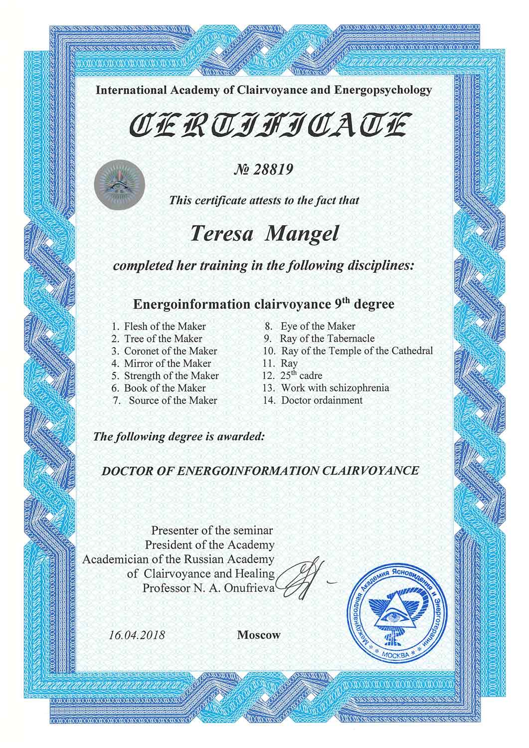 Juhendab parapsühholoogia doktor, professor ja akadeemik Teresa Mängel